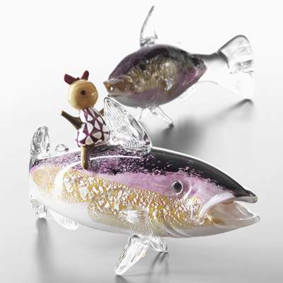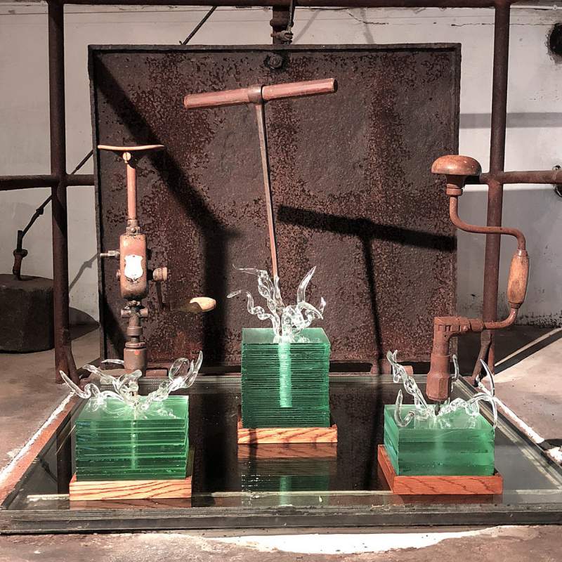 KY-eleverna från Kosta Glasskola visar sin återvinningskonst.