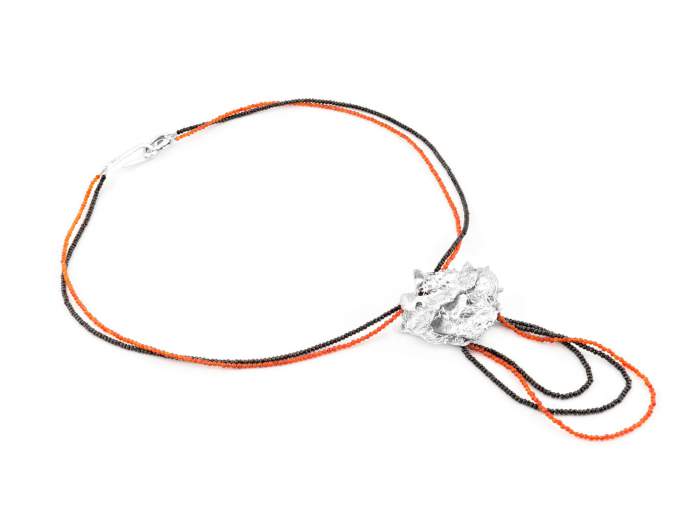 Smycken i silver med asfalt och annat material.