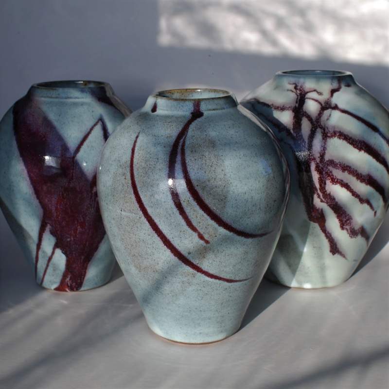 Rakugruppen ”Eld och lågor” – rakubränd keramik.