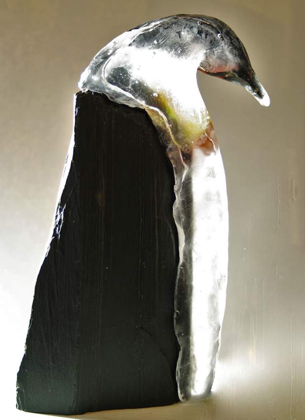 Skulptur i skiffer och glas