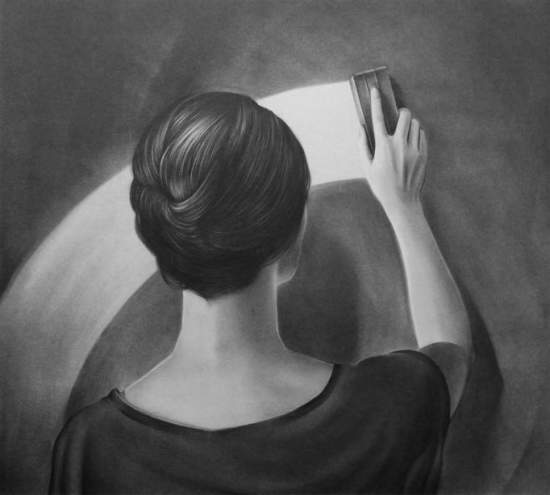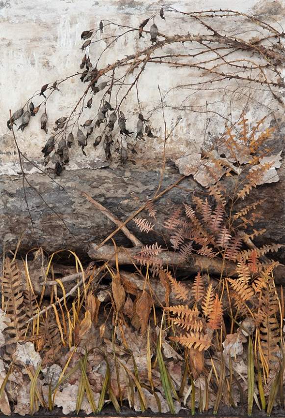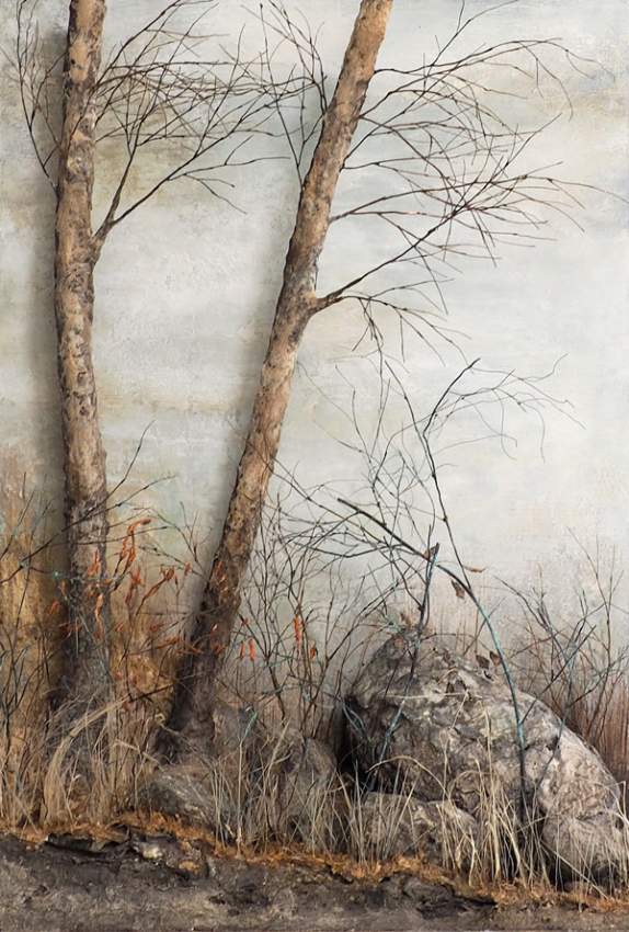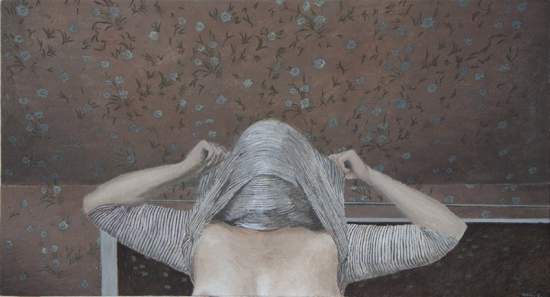 gipsskulpturer tillsammans med tygobjekt och trådar. Verkens innehåll har ofta sin utgångspunkt i personliga upplevelser, men under arbetets gång blir de alltmer öppna för tolkningsmöjligheter. Kvar är det ursprungliga tillståndet elller en känsla.