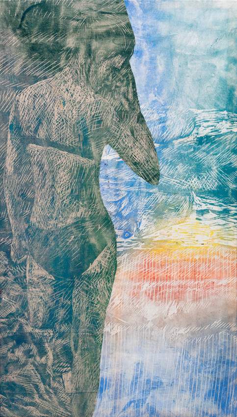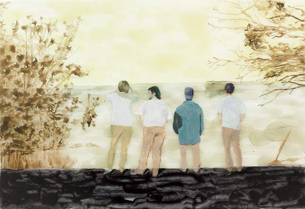 en ljudinstallation, fyra större akvareller,