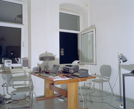 digital lådkamera – konstnären finns i galleriet och experimenterar med en hembyggd digitalkamera.
