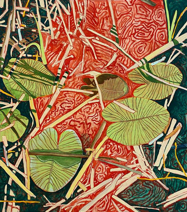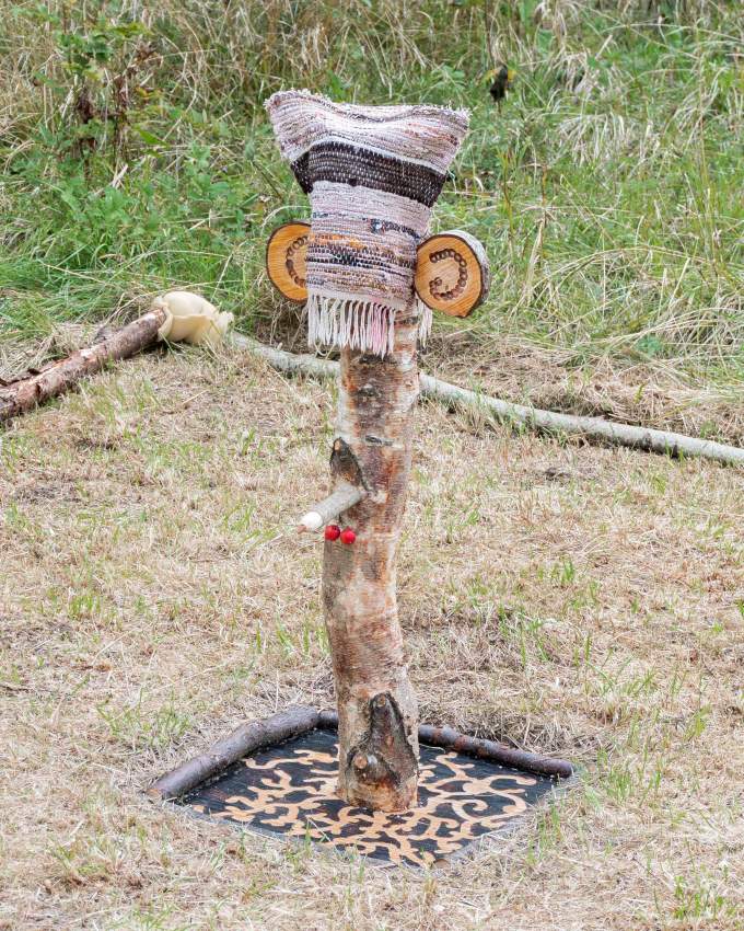 Konstnären Juntunen Roos har arbetat i en svensk textiltradition, men har även provat på japanska tekniker. På senare tid har hon utforskat den finska hantverkstraditionens näverteknik, som hon kom i kontakt med som barn via släkten i Finland. I modern tid har nävern bytts ut mot olika plastmaterial. Genom vävtekniken blir bilderna