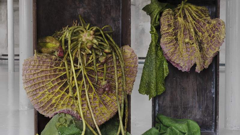 Det finländska konstnärskollektivet nabbteeri fyller Färgfabrikens stora sal med en mäktig memento mori-installation som gestaltar trädgårdens vissnade skönhet och kretsloppets dolda sceneri. nabbteeri arbetar framför allt med lånade eller återanvända material från den lokala miljön. Organiskt material förenas sedan med digitalt hantverk och 3D-animerade iscensättningar. Upplev
