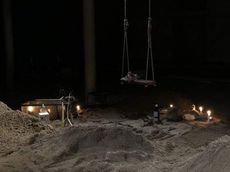 Här iscensätts en berättelse om några personer som för kvällen söker ett äventyr, men någonting går fel. // A theatrical installation about an erotic adventure with a sudden ending