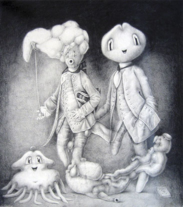 teckningar och skulpturer.