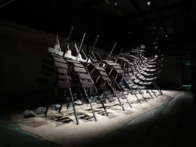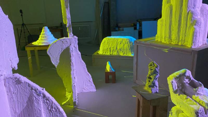 Object Species, Sculptures” av Egill Sæbjörnsson består av installationer med nyproducerade objekt/skulpturer, animerade projektioner, självgenererande videoprojektioner och ljud.