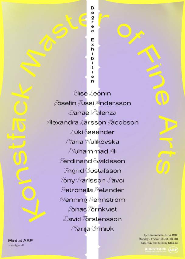 Vill du vara säker på att du/ditt sällskap ska kunna genomföra ett besök under önskad tid finns möjlighet för tidsbokning via mfa2konstfack@gmail.com.