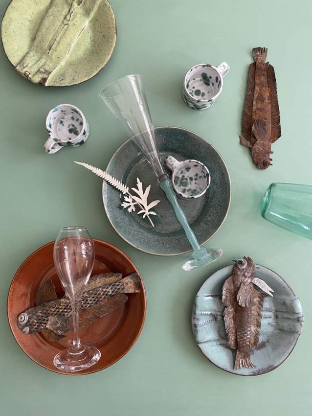 delar av en finservis, tillverkad på uppdrag av Sthlms konstråd för Gamlebos äldreboende.