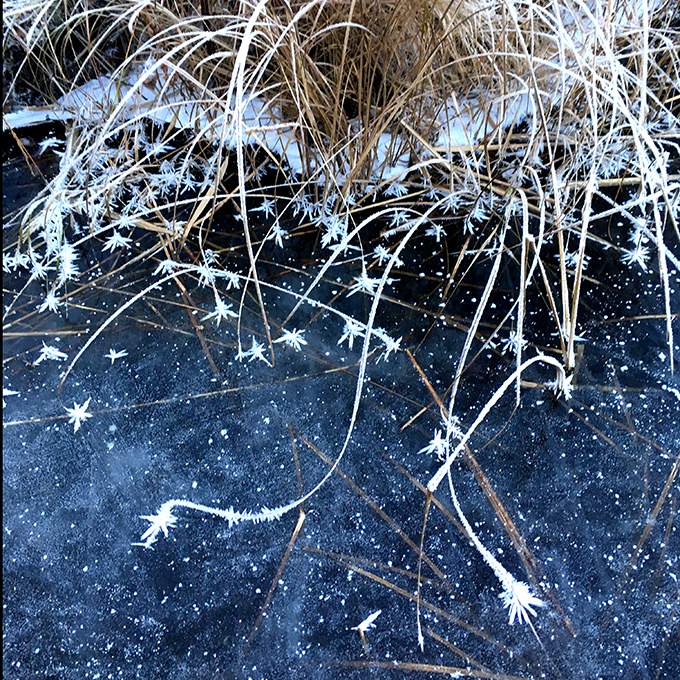 Textilkonstnären Agneta B Lind har sedan många år återkommit till temat “Vattenvävar” i sitt ar- bete. Hon fascineras av hur vattnet förvränger och leker med omgivningens speglingar, solens blänk på vattenytan och bottnens dunkla färger och former som skymtar fram.